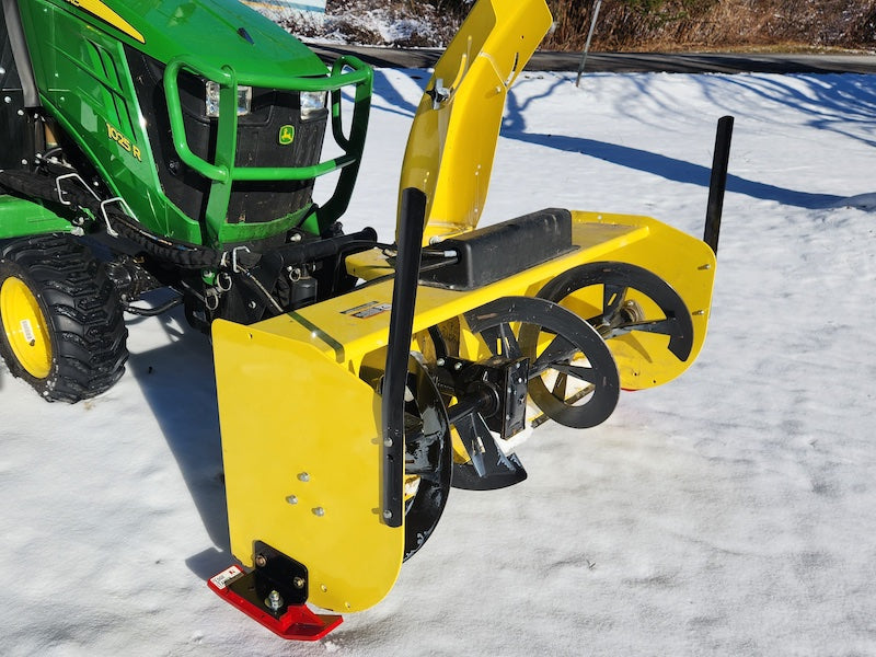With these brackets, you can fasten a set of Bolt-On Tamers to your snowblower or box, and gain just enough clearance to protect grass and your gravel driveway. These adjustable brackets are fabricated of steel, powder coated and proudly made in the USA.